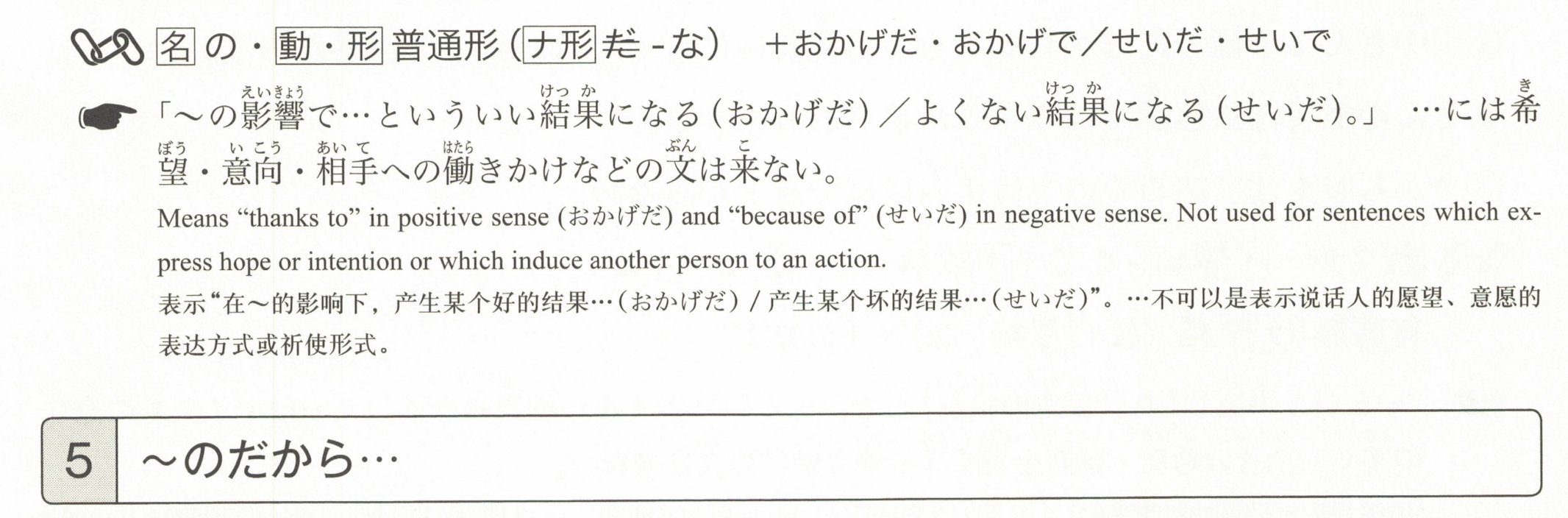 ②天気のいい日が続いたおかげで、工事が早く終わった。