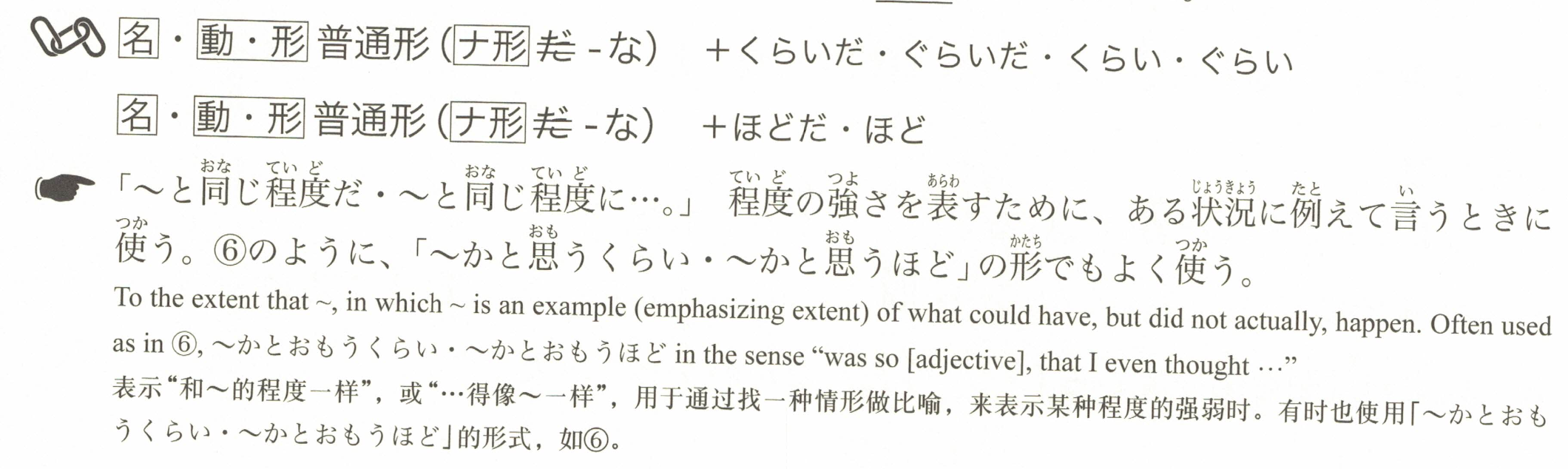 ⑥刚才发生了地震。这本书摇晃得很厉害,我以为它会翻倒。