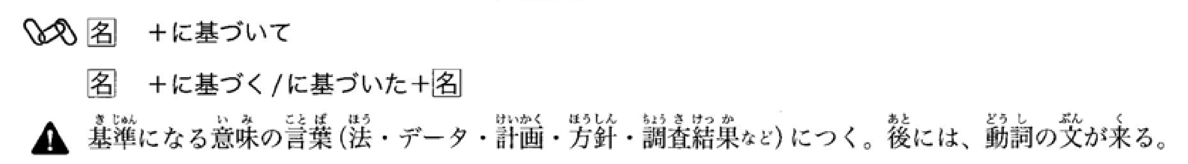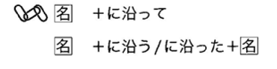 接在具有基准意义的词语后面(如规则、方针、手册、想法等)。后面通常接表示顺应该基准并共同推进的连续性行为的句子。