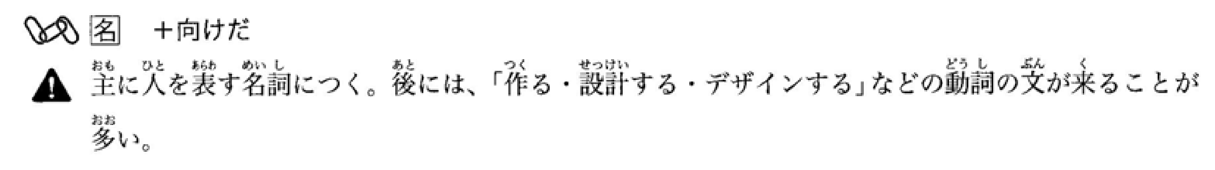 主要接在人称名词后面。后面通常接表示‘制作’、‘设计’、‘构思’等动词的句子。