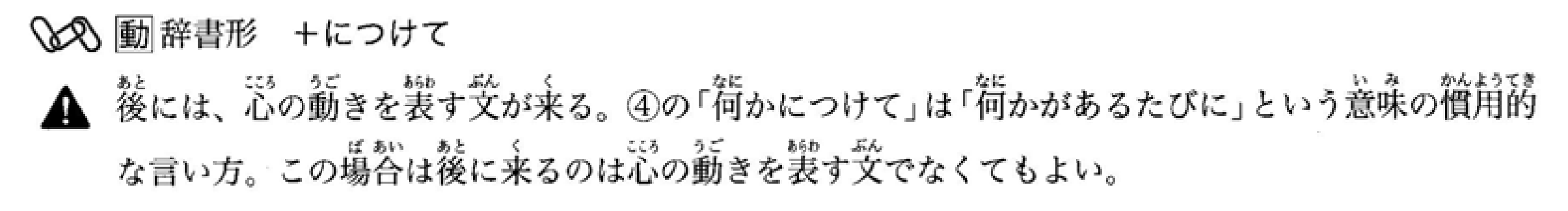 后面通常接表示情感变化的句子。‘何かにつけて’是表示‘每当有什么事情发生时’的惯用表达。在这种情况下,后面不一定要接表示情感变化的句子。