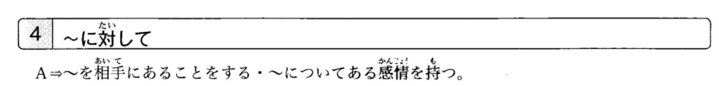 针对某人做某事・对~怀有某种情感。