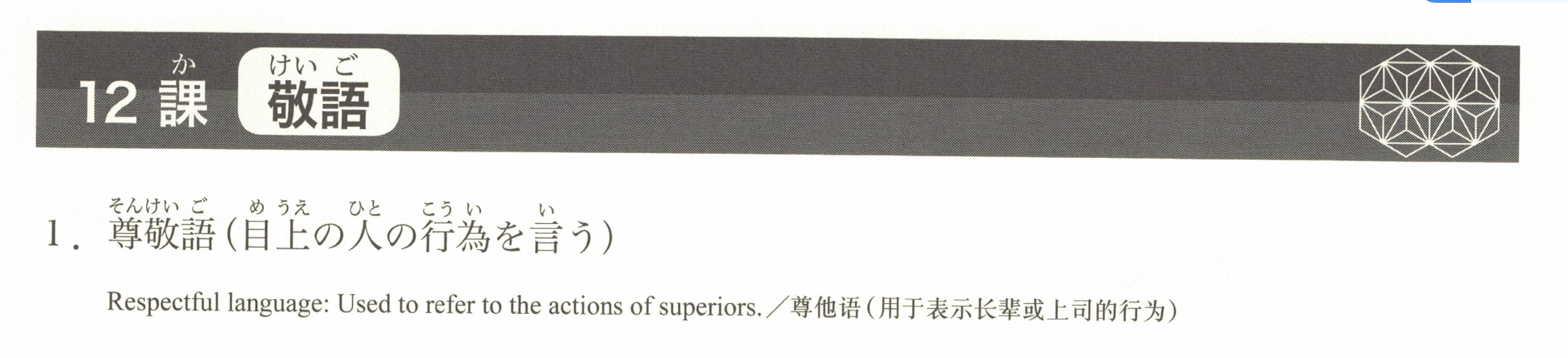 | (先生の)ご本をお借りします。(先生を)会場へご案内します。